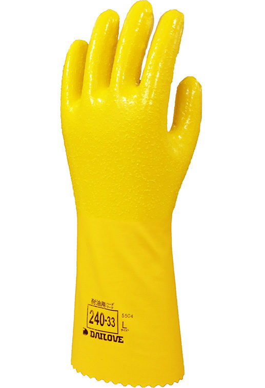 油への浸けこみ作業が可能 粒子状滑り止めでグリップ強化、肘下まで保護